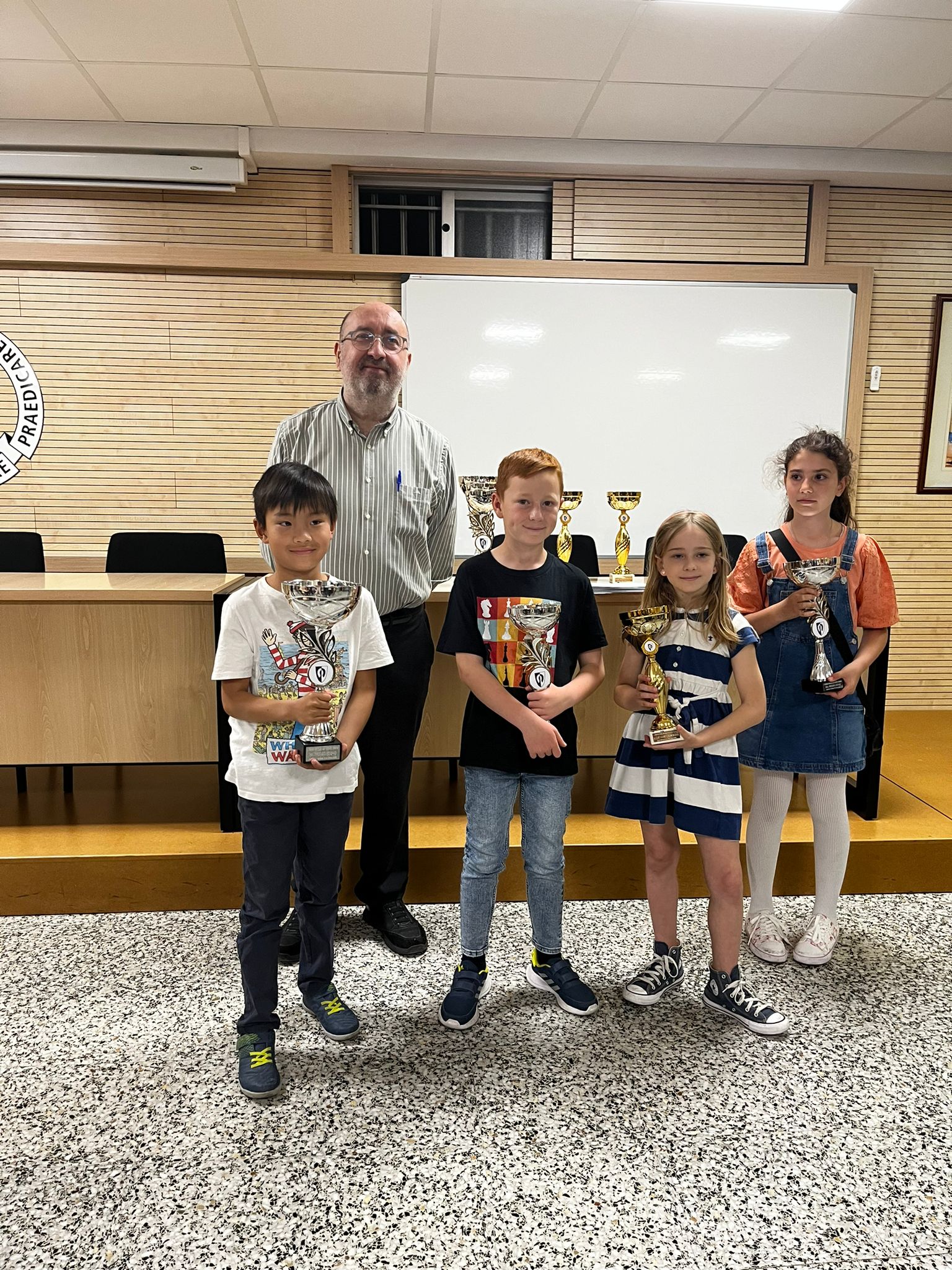 También se entregaron merecidos trofeos a Carlos Guillem como el mejor jugador Sub-2000, a Lucas Morera como el mejor jugador Sub-1800, a Lucas Ainsa como el primer clasificado Sub-1600 y alumno destacado del colegio Dominicos, y a Julen Boluda como el mejor jugador Sub-1400. Además, Gayane Harutyunyan fue reconocida como la primera clasificada en la categoría femenina.